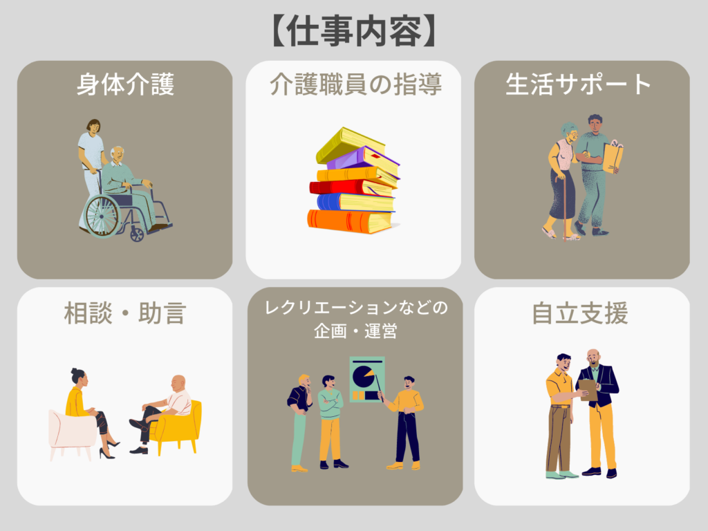 介護福祉士の仕事内容は一概に介護の仕事のみというわけではありません。